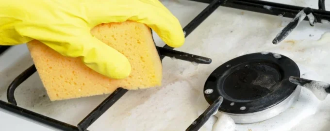وأضافت المادة: “قم بإزالة مقابض التحكم وشبكات الموقد والأغطية وانقعها في الماء والصابون. استخدم قطعة قماش مبللة من الألياف الدقيقة لمسح أي أوساخ متبقية من الموقد. امزج أجزاء متساوية من الخل والماء في زجاجة رذاذ ورش المحلول على السطح. اتركه لمدة 10-15 دقيقة. رش صودا الخبز على البقع”.