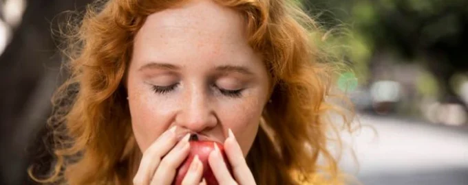 تذكر مجلة التطور والسلوك البشري أن التفاح يحتوي على مضادات الأكسدة التي تعمل كمطهر ويمكن أن تطهر الأسنان من البكتيريا والبلاك. وهذا يساعد على تحييد رائحة الفم الكريهة ويجعل أنفاسك أكثر انتعاشًا.