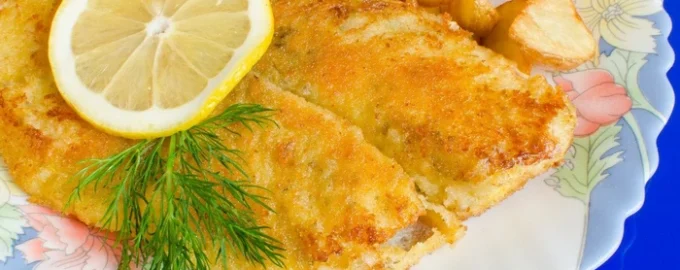 الصورة: من المصادر المفتوحة يقدم مع سلطة الخضار يصبح السمك المخبوز طريًا وعصيرًا، كما أن البطاطس المقلية المقرمشة وقشرة الجبن بمثابة طبق جانبي ممتاز.
